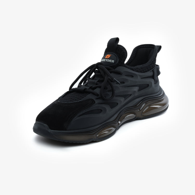 5Y1SA17180 Men's Black Orange Genuine Leather Sneakers