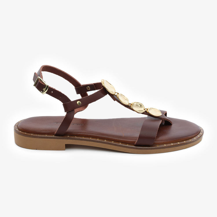 5Y2YS59213 Women's Brown Genuine Leather Sandals