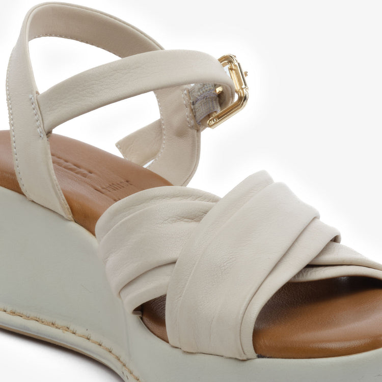 5Y2CS59263 Women's Off-White Genuine Leather Heeled Sandals