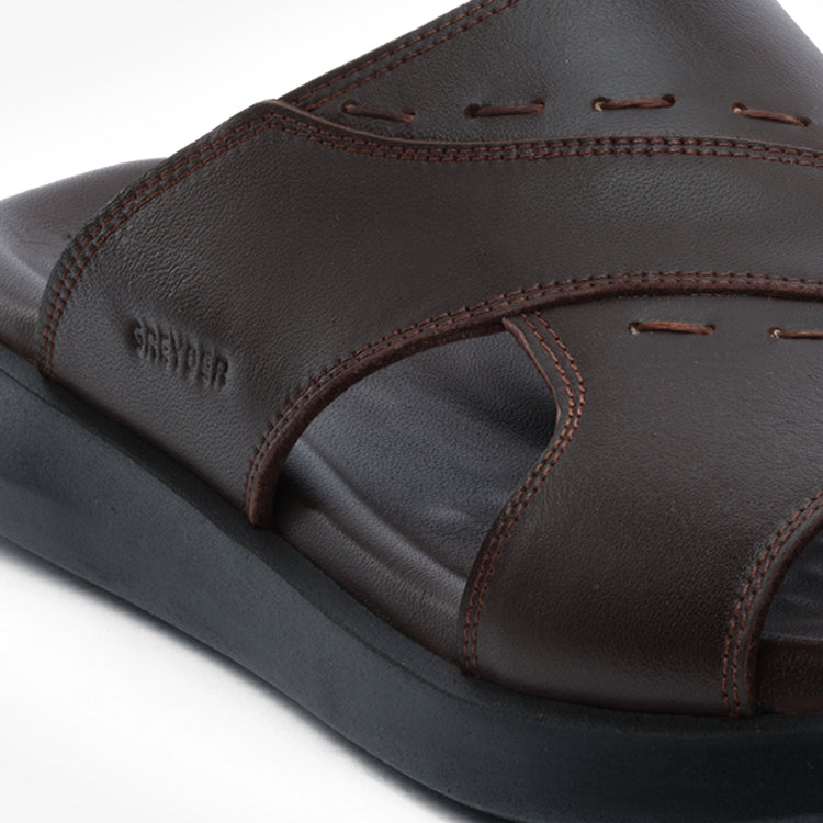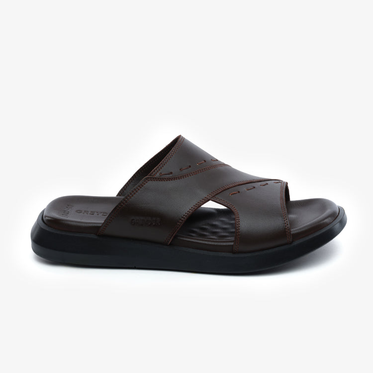 5Y1FT64689 Men's Brown Genuine Leather Slippers