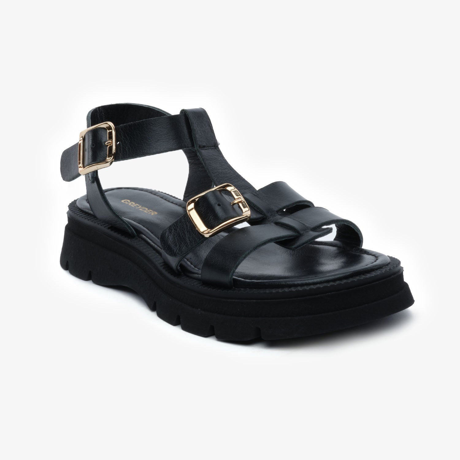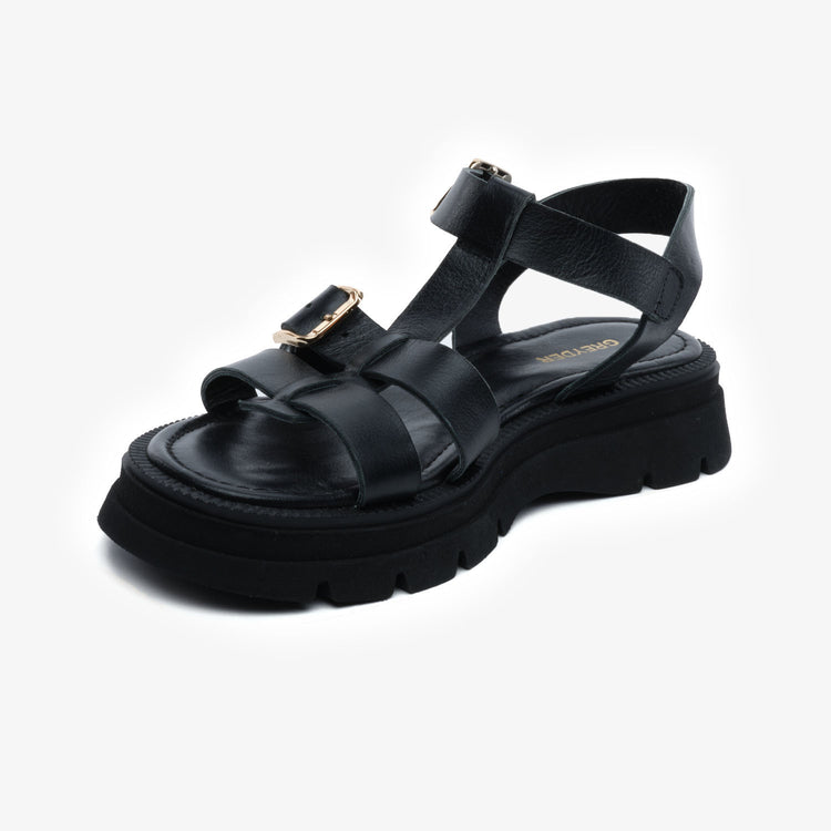 5Y2CS59031 Women's Black Genuine Leather Sandals