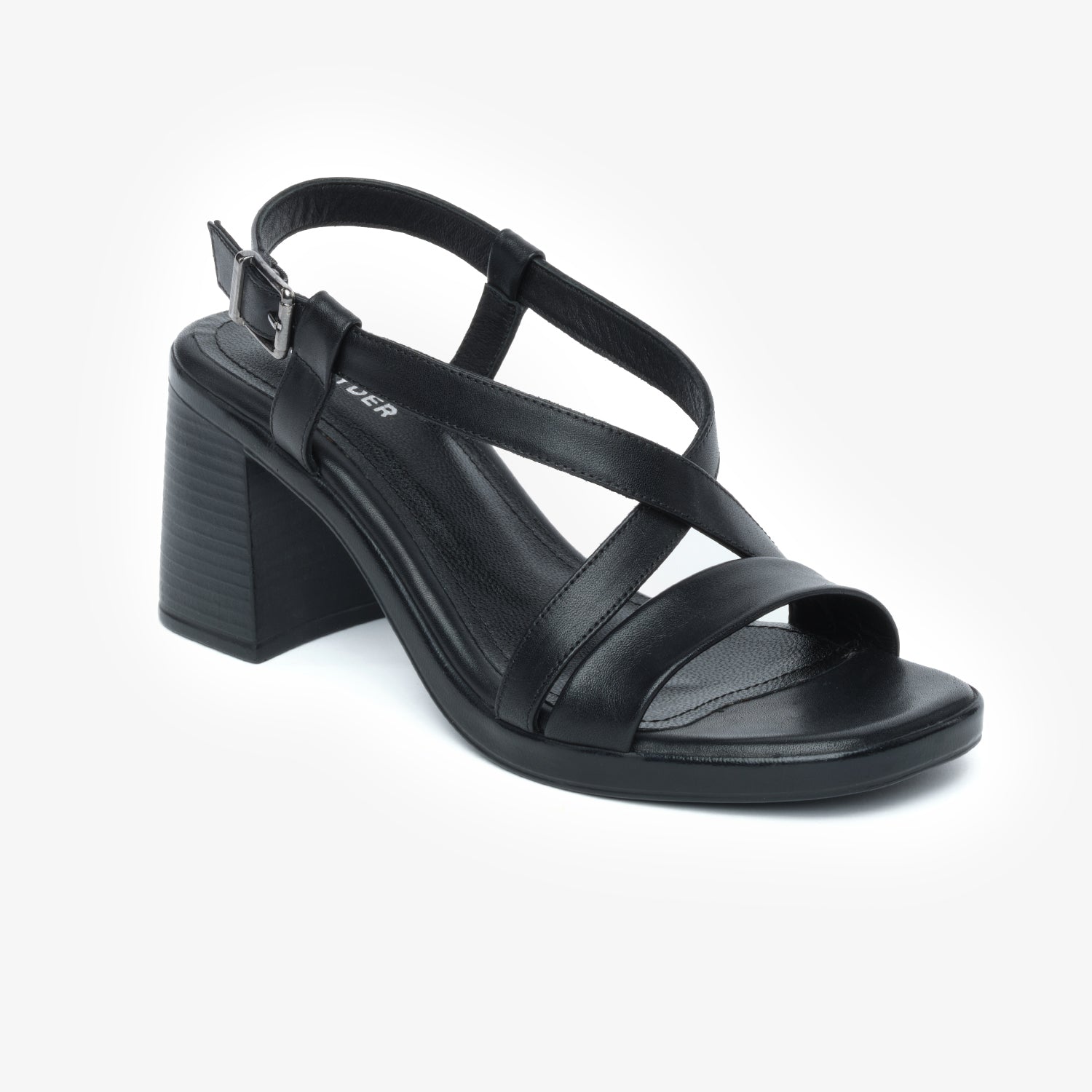 5Y2WS59247 Women's Black Genuine Leather Heeled Sandals