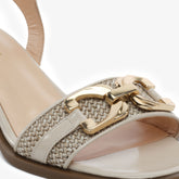 5Y2WS59258 Women's Beige Crinkled Patent Genuine Leather Heeled Sandals