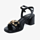 5Y2WS59258 Women's Black Crinkled Patent Genuine Leather Heeled Sandals